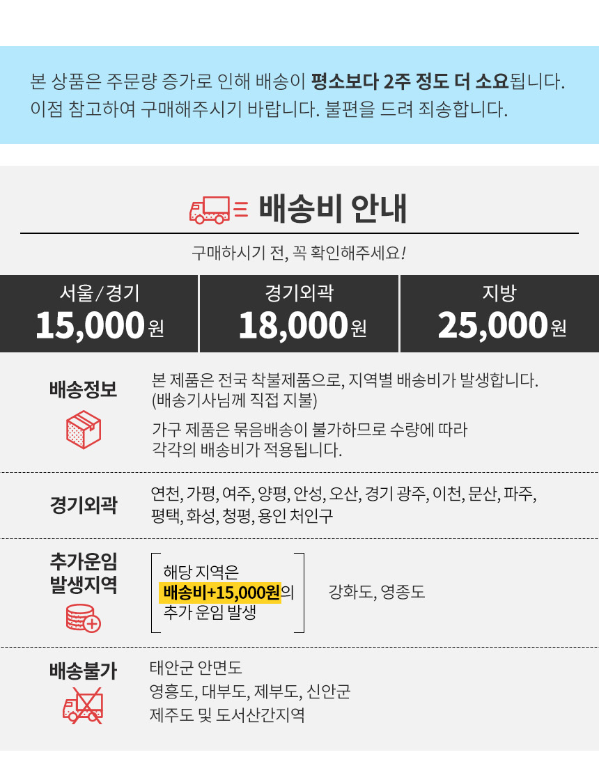 ¹è¼Û-¼¿ï°æ±â ÁÖ¸»Á¦¿Ü 7~10ÀÏ Áö¹æ ÁÖ¸»Á¦¿Ü 2ÁÖ/ ¼³Ä¡ºñ- Àü±¹ ÂøºÒ. ±â»ç´Ô°ú ÅëÈÀÌÈÄ Ãâ°í/ Áö¹æ¹°·ùÀ̵¿ÈÄ º¯½É Ãë¼Ò½Ã ¿Õº¹¹è¼Ûºñ ºÎ´ã |